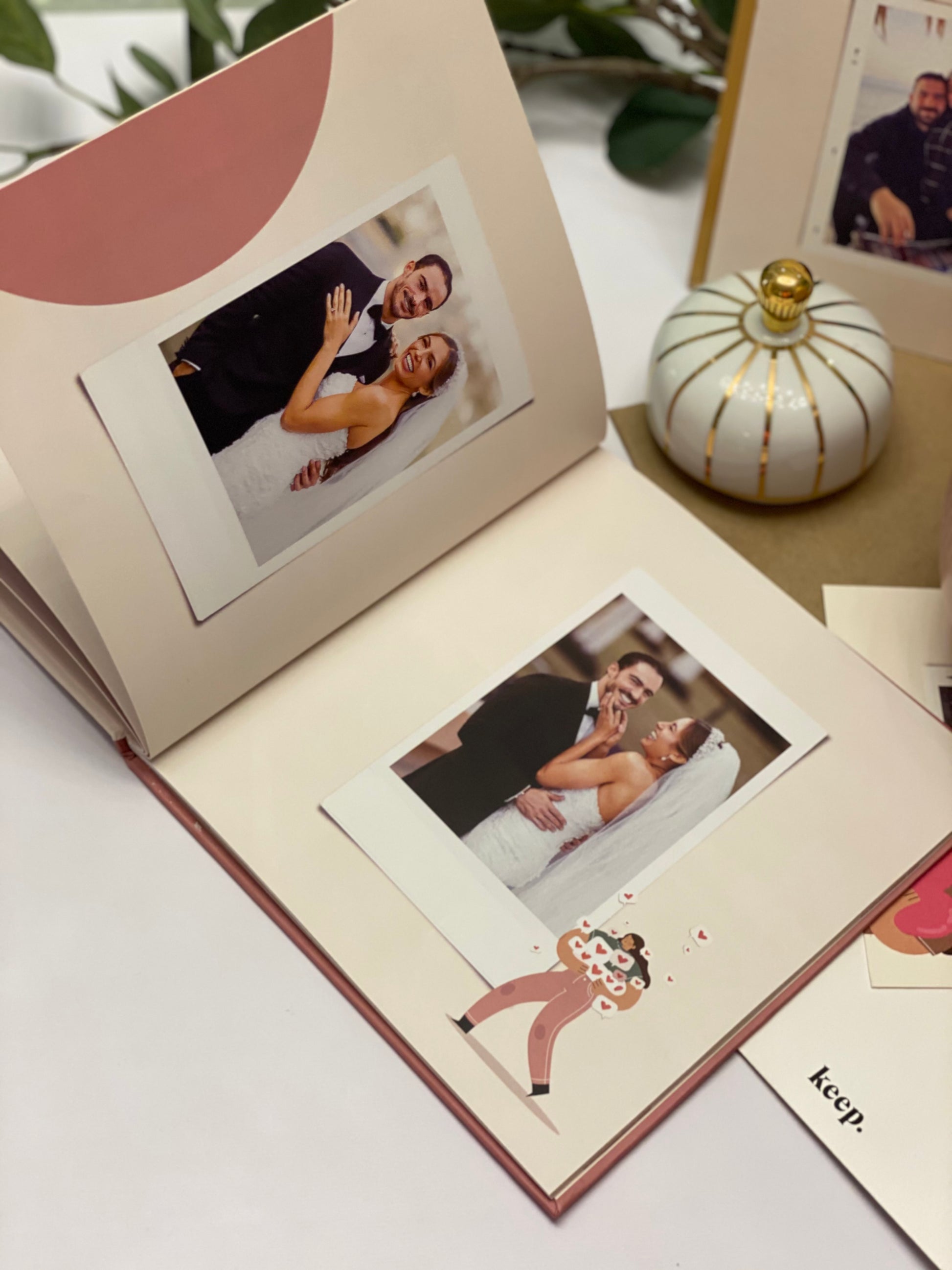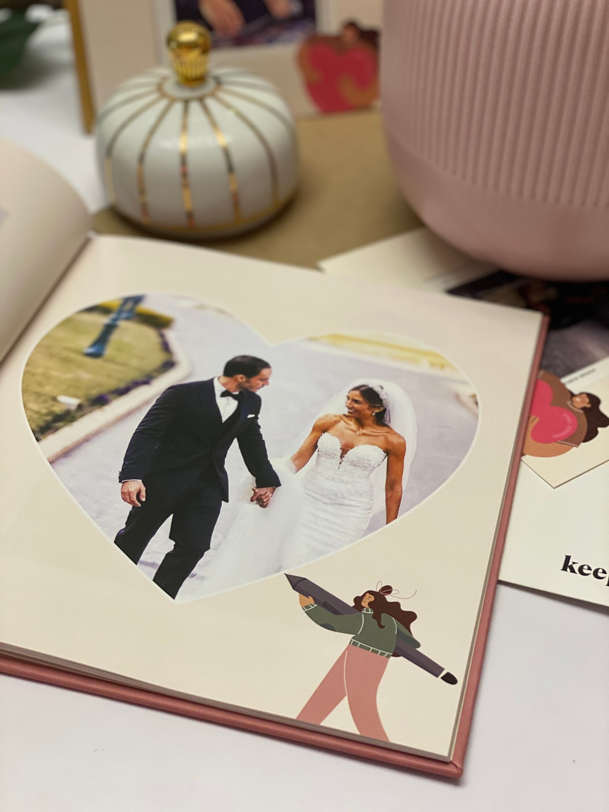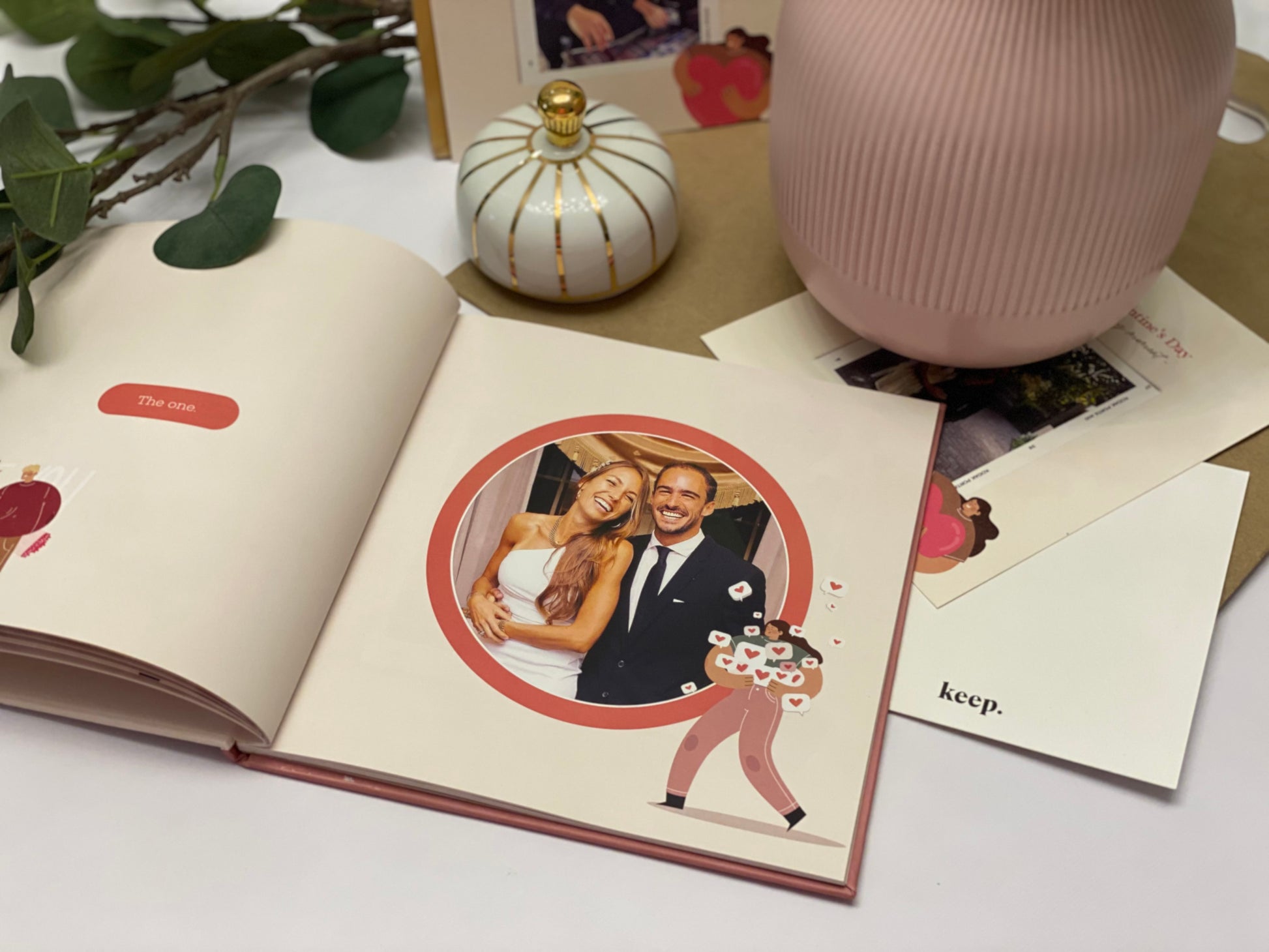 Celebrate your favorite relationship memories with a modern romantic feel with an artistic hue.