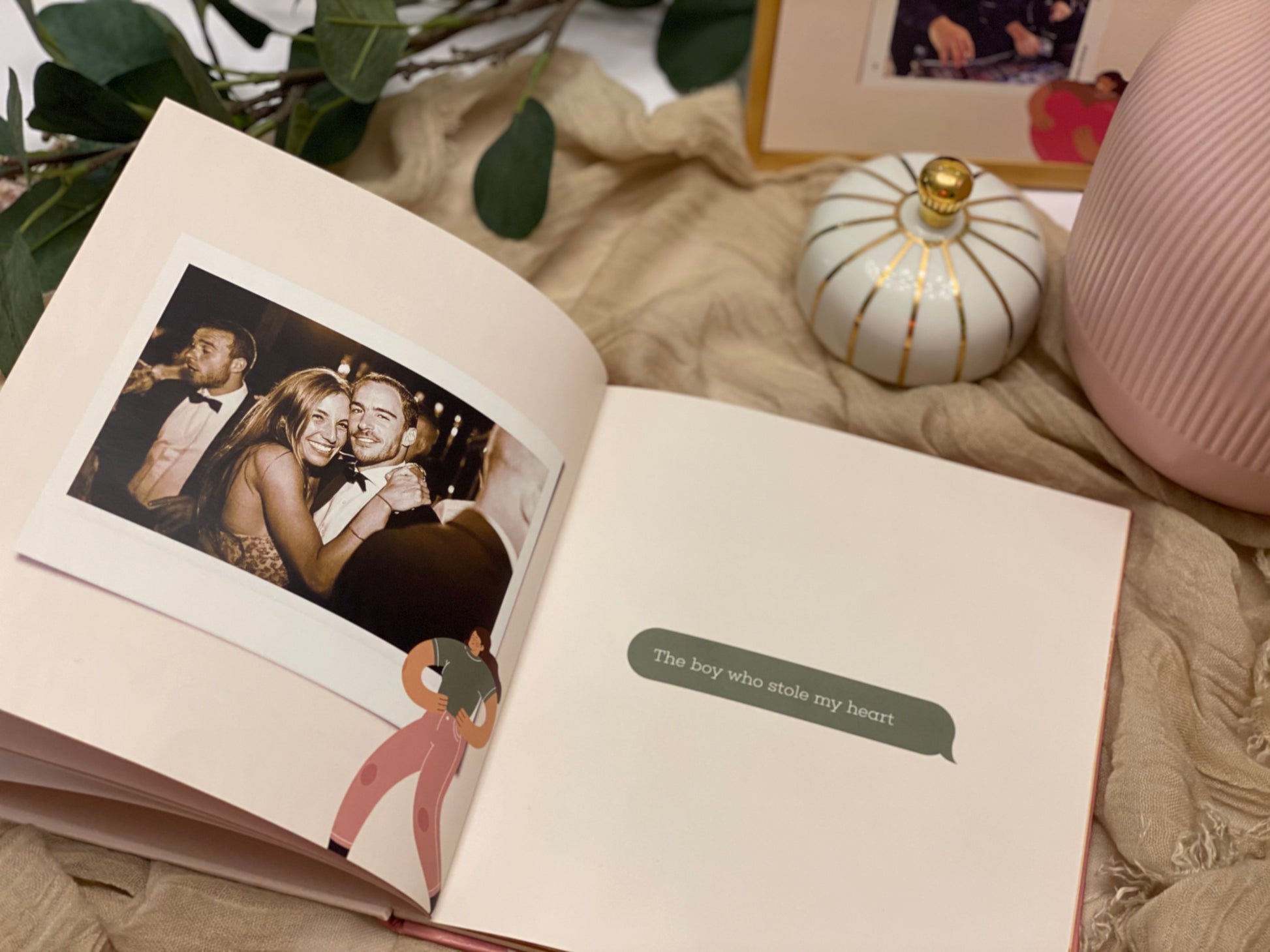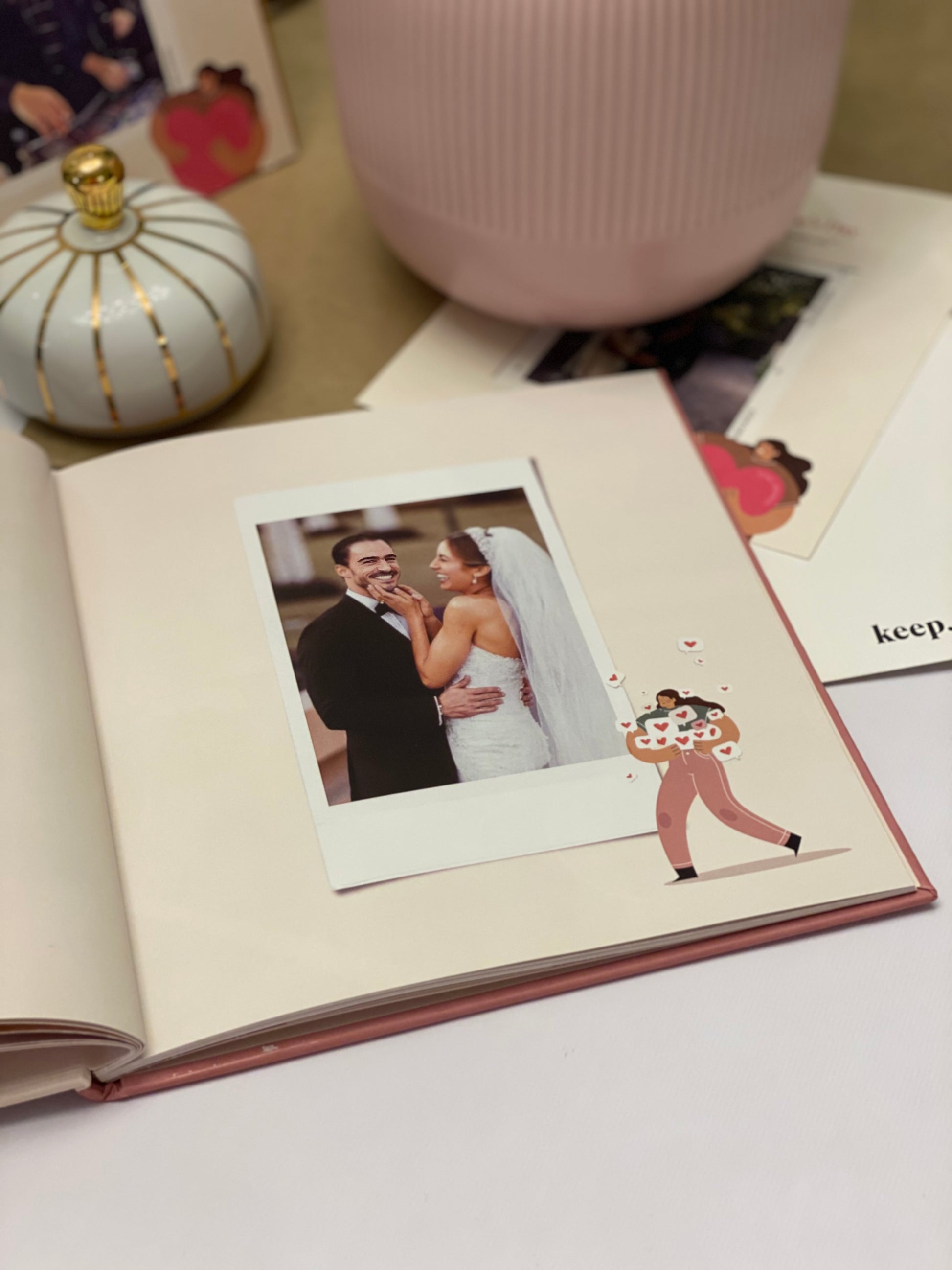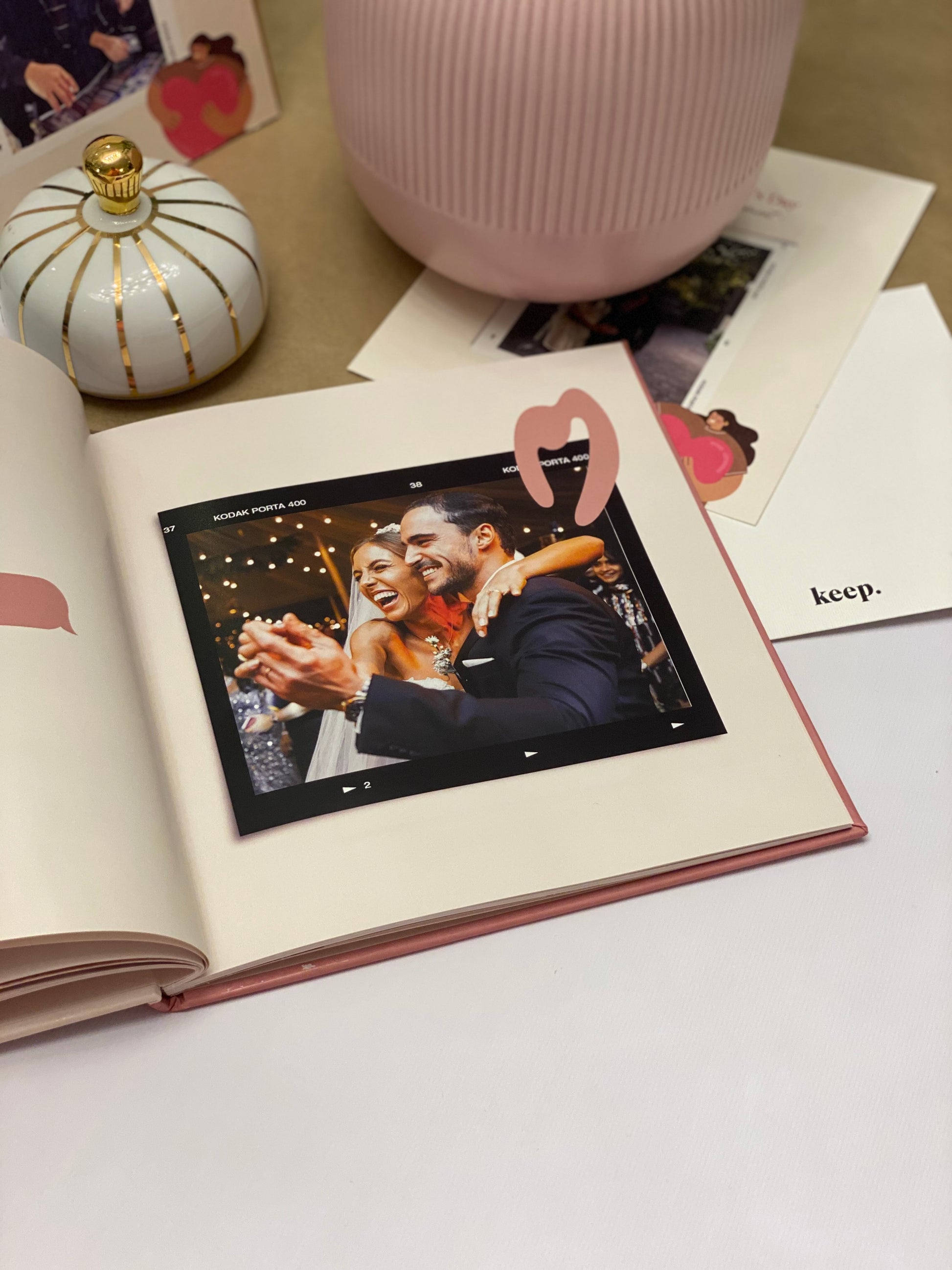 Celebrate your favorite relationship memories with a modern romantic feel with an artistic hue.